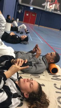 Daarna was het sparren met de elektroniosche bepansering. Dit was uiteraard voor iedereen een bijzondere ervaring. Er werden veel rondjes gespard en er was voor iedereen voldoende ruimte en partijen om te leren.